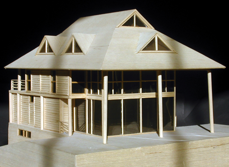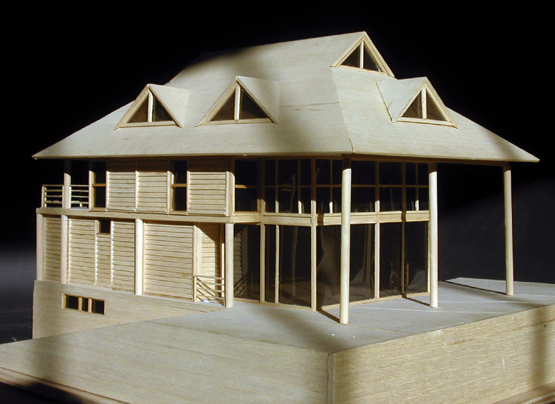 Il progetto prevede il rivestimento delle pareti perimetrali del piano terra e del primo piano con tavole di legno di cedro impregnato tra loro sovrapposte in modo che colpite dalla luce risultino una superficie con una trama orizzontale anziché piana.